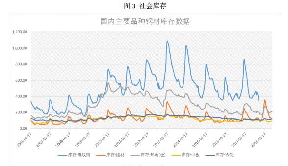 在运用库存数据时,可以直观地把库存理解为是钢材贸易流通过程中的积累。当供给大于需求的时候,市场上出现钢材的滞销,导致库存的积压;当需求大于库存的时候,市场上钢材大量出清,使得库存下降。因此,库存数据的动态变化方向和速率可以理解为是市场供需两端力量较量后得出的结果。