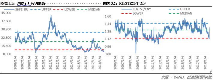 根据可得的沪胶历史价格走势来看,从1997年4月份至今约21年的时间里,天胶最低价格是2001年12月份的6320元/吨,最高价是2011年2月份的43500元/吨,在当前沪胶主力合约价格位于12000元/吨附近时,可下跌的空间和可上涨的空间明显不在一个量级,加上近两年期现套利资金的盛行,沪胶相对于新交所的标胶估值已经明显偏低(短期比价的大幅拉升主要是受到沪胶主力换月的影响),再结合期货价格的季节性走势可以看出,沪胶在9月合约交割完成后会出现一波季节性上涨行情,因而当前位置并不适合投机空头主动入场做空,即使主动入场而盈利空间也会相对有限。