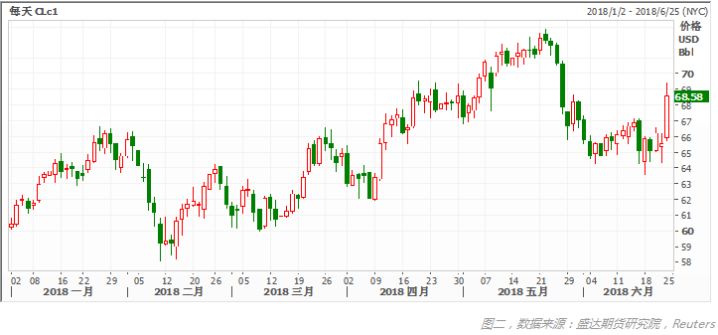 市场期待已久的减产联盟会议于6月22日在维也纳落下帷幕,然而并没有像市场在此前期许的那样达成具体的增产计划。减产联盟在公告中声明:在2016年11月达成的减产协议依然有效,减产联盟将从7月份开始通过有能力增产的产油国增产的方式将当前158%(2018年5月减产执行率)的减产执行率减少到100%。这一消息的宣布,为过去近一个月内的各种猜测画上了句号。按照减产联盟5月份的产量数据测算,减产执行率减少到100%,预示着7月减产联盟将增产70万桶/天的产量。利空出尽,市场卖预期买事实,当日油价大幅拉涨;布伦特原油首行合约自当日低点最高上涨2.59美元/桶,WTI原油首行合约自低点最高上涨3.67美元/桶,两市价差近一个月内首次缩小至7美元/桶以内。减产联盟会议后,油价走势如何?我们认为,虽然减产联盟决定将减产执行率减少至100%,但在美国供给输出受运输瓶颈约束的情况下,全球供需格局依旧紧张,料国际油价未来将在高位区间震荡;以下我们将做具体分析。