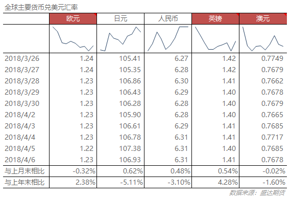 3月外汇市场继续呈现供求平衡格局。国际金融市场避险情绪上升,主要非美元货币汇率相对美元升值,资产价格变动等多重因素共同作用,外汇储备规模回升。贸易战背景下,人民币贬值预期加强,资本外流压力依然较大;特朗普要求额外对1000亿美元中国进口商品加征关税,中美贸易战进一步升级,环球时报评论称坚决回击美方的任何贸易打压,我们将为此不惜任何代价,中美贸易战不断加剧,工业品、股市回调风险将进一步加剧;国3月新增非农虽不及预期,但薪资增速继续提升非农不及预期可能与天气因素有一定关系,且伴随美国就业市场持续向好,新增非农人数降低也属正常,同时薪资上涨表明劳动力市场趋紧,这将促使美联储今年进一步加息。
