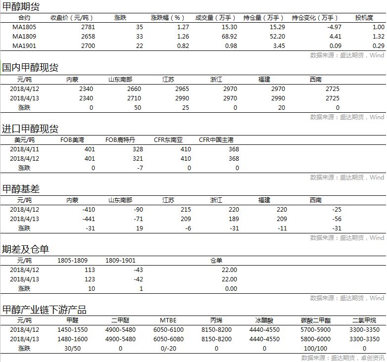 盘面上,主力合约MA1809日内低开高走,震荡有升,收于2658元/吨,上涨33元/吨,持仓量增加4.41万手至52.20万手。