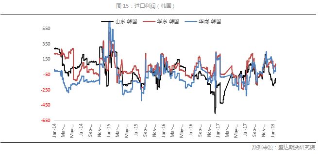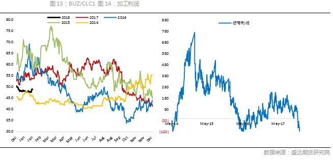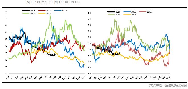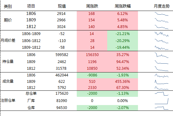 期货盘面在本周原油带动下强势反弹,但华东、华南持稳,使得基差大幅走弱。1806合约基差现值-310, 1809合约基差现值-376。(现货取华东价)