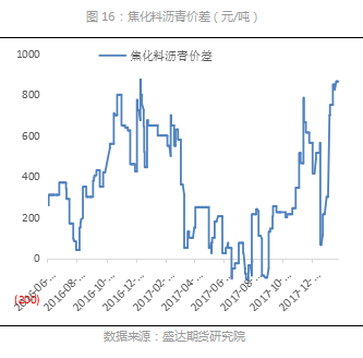 山东焦化料转强至3250元/吨,对沥青价差走强,较前期弱势明显不同。