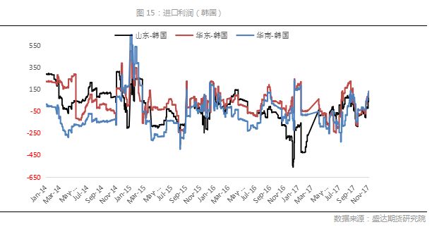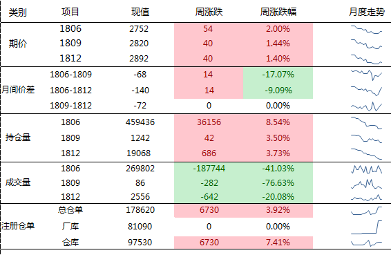 期货盘面在本周原油带动下强势反弹,但华东、华南走弱,使得基差大幅走弱。1806合约基差现值-157, 1809合约基差现值-227。(现货取华东价)