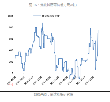 山东焦化料转强至3100元/吨,对沥青价差走强,较前期弱势明显不同。