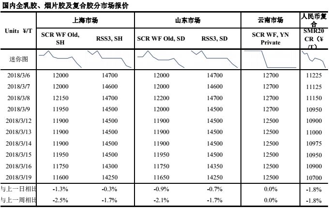1、截至3月19日青岛保税区橡胶库存下降3.9%。