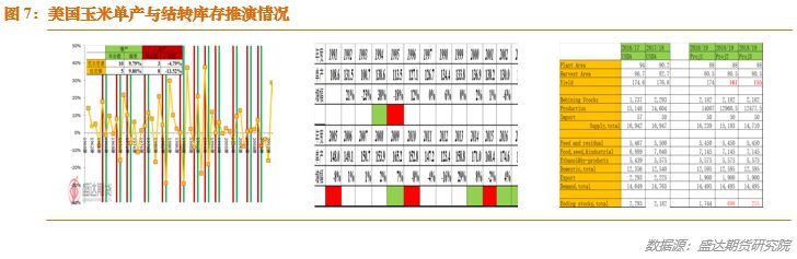 据盛达期货研究院分析,美国自90年代开始大规模种植转基因玉米以来,确实保持这样的规律:历次,美国玉米达成创纪录单产的年份,次年玉米单产都下降。