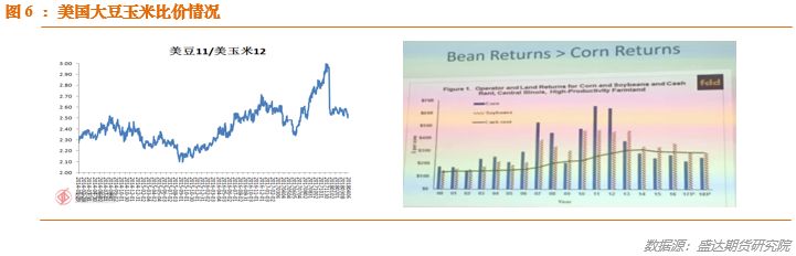 2017年以来,美豆1711合约与美玉米1712合约比价一直在2.5以上,并且自2013年以来,美国农户种植大豆的收益开始瞧瞧地超过玉米,且持续至目前;这将导致2018年美国玉米地继续转种大豆。