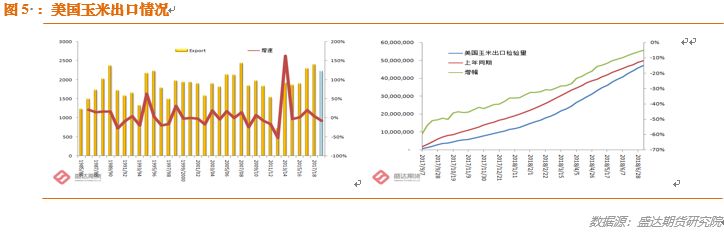 18/19年度,美玉米新作出口较上月预估数上调1.25亿蒲至22.25亿蒲,逻辑在于俄罗斯、阿根廷和巴西玉米减产。