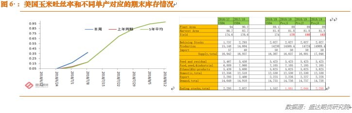 美玉米收获率在91.81%,这也符合目前美玉米优良率较高主产区大多天气良好的情况。与去年和五年平均很接近,高于自90年以来的均值90.98%。今年自播种以来,美国主产区风调雨顺,留给美玉米天气炒作的时间窗口几乎关闭。