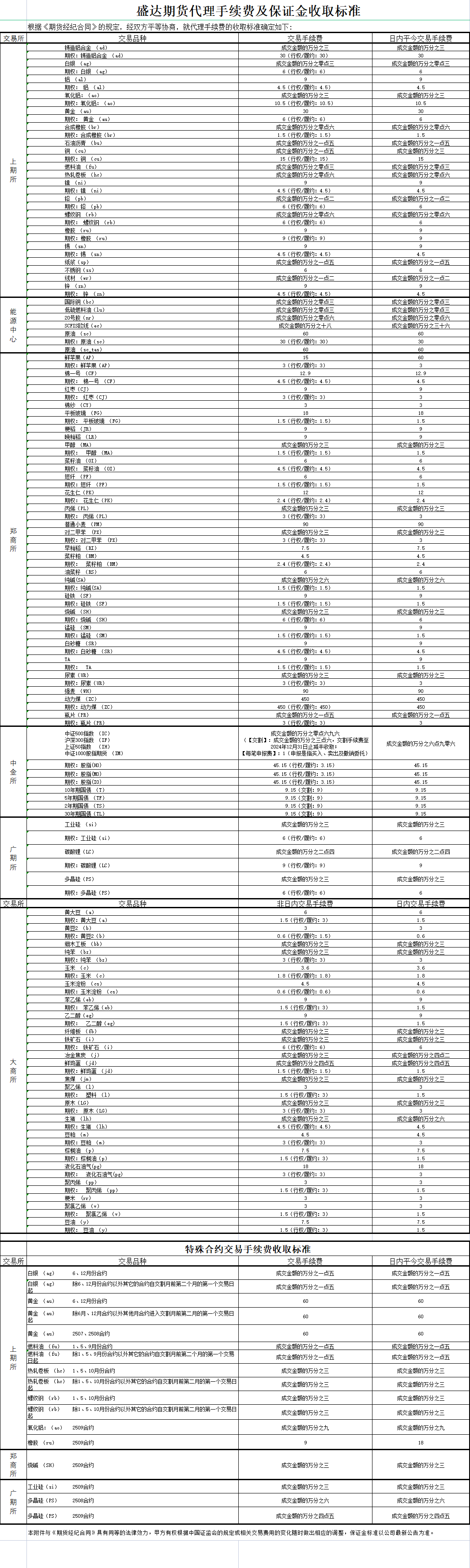 手续费标准