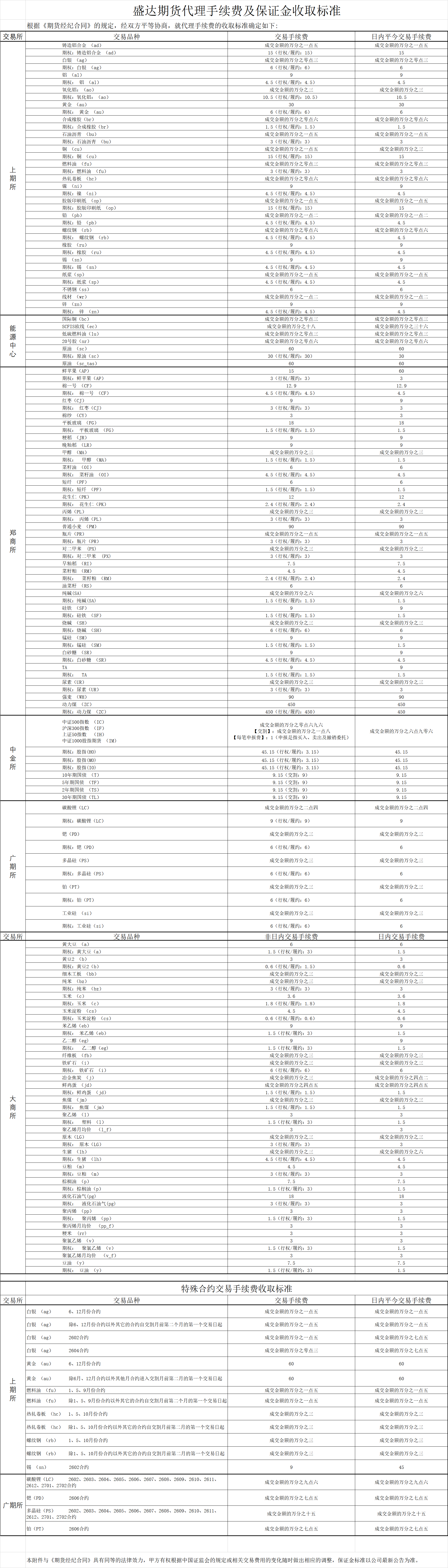 手续费标准