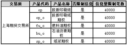 胶版印刷纸期货和胶版印刷纸、燃料油、石油沥青、纸浆期权品种的信息量限制笔数具体如下: