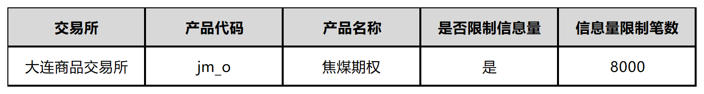 焦煤期权品种的信息量限制笔数具体如下: