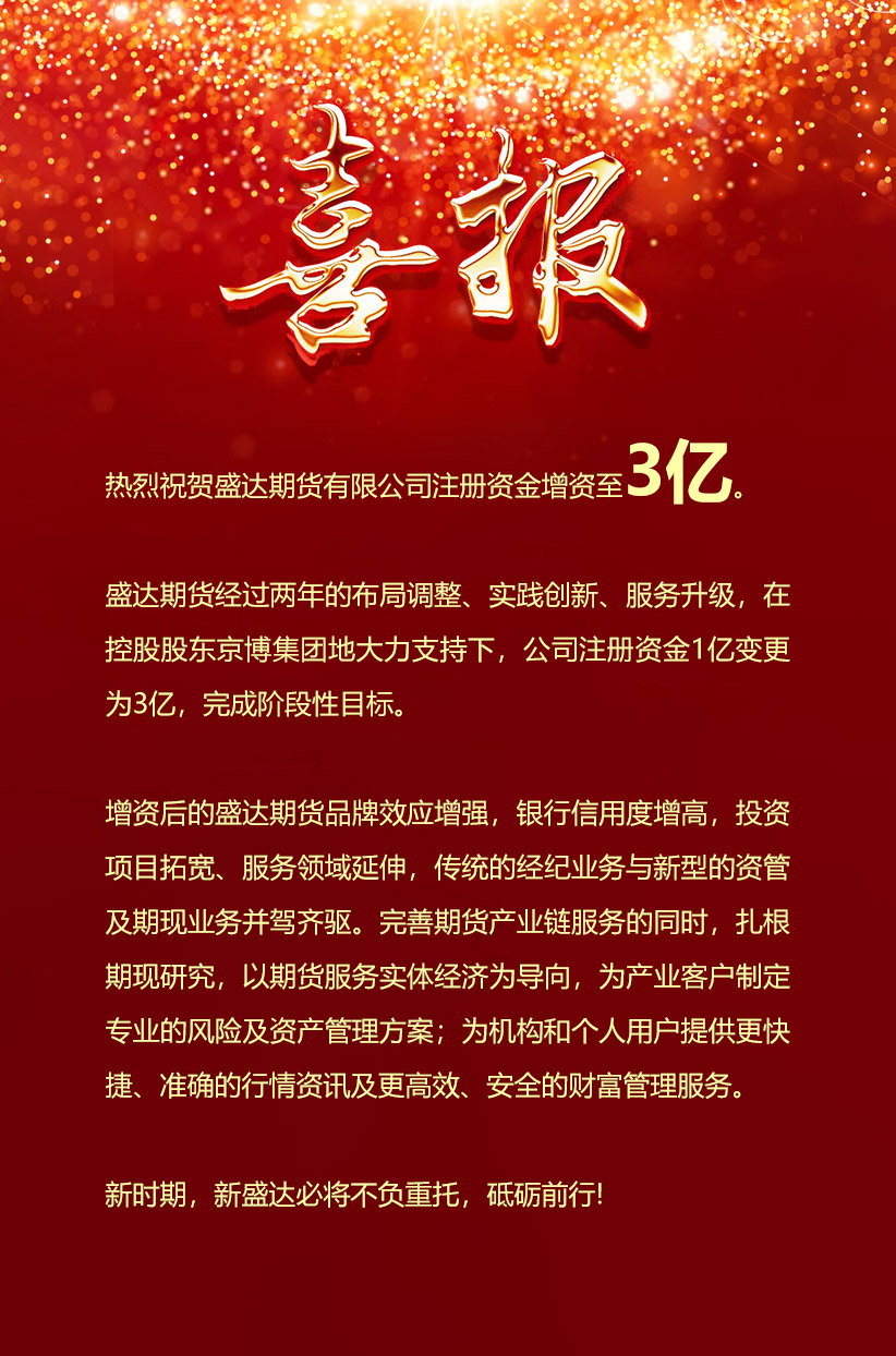 盛达期货有限公司获控股股东扩增注册资本至3亿元