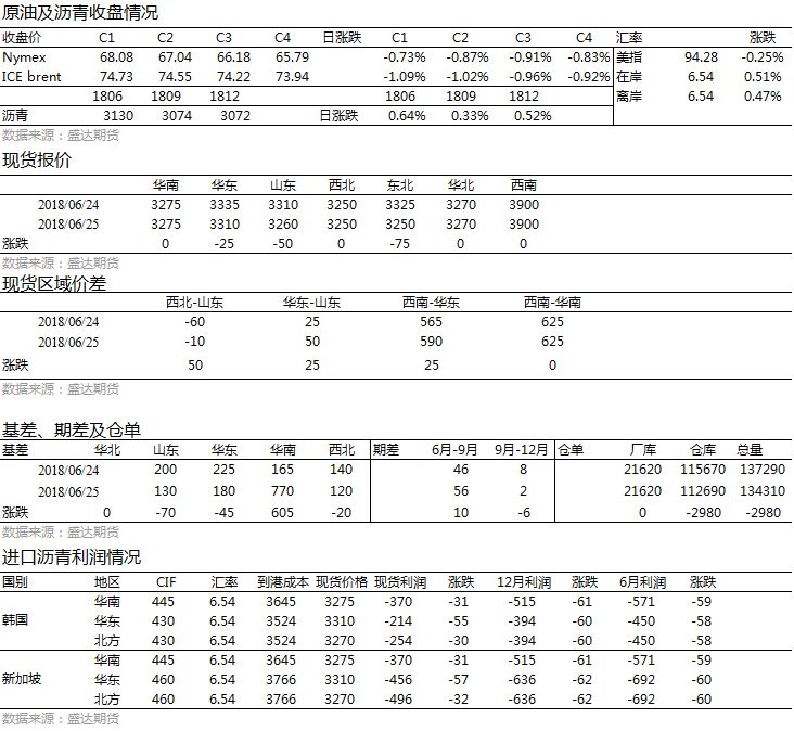 山东地区上周因为上合峰会的影响,出货情况一般,运输方面已经有外地货源流入山东,但是下游需求不理想;关中地区部分货源发往两湖及港口地区,出货情况较为理想,价格也开始小幅上调,但是就目前下游的整体需求程度来看,如果内地与港口套利一直处于打开状态,近期库存或将有一定下降。郑州甲醇主力1809合约建议关注2700一线支撑。