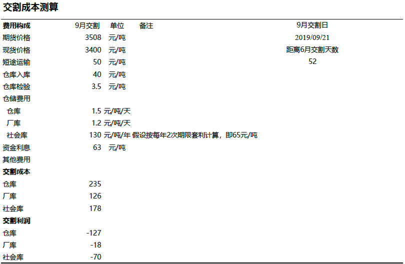 1909-1912价差收于110元/吨,1912-2006价格收于136元/吨,相比历史同期均处于高位,但1909合约持仓量过小,1909-1912价差可能存在不回归的风险;1912-2006在需求旺季仍将保持强势,可在需求旺季临近尾声时布局反套。