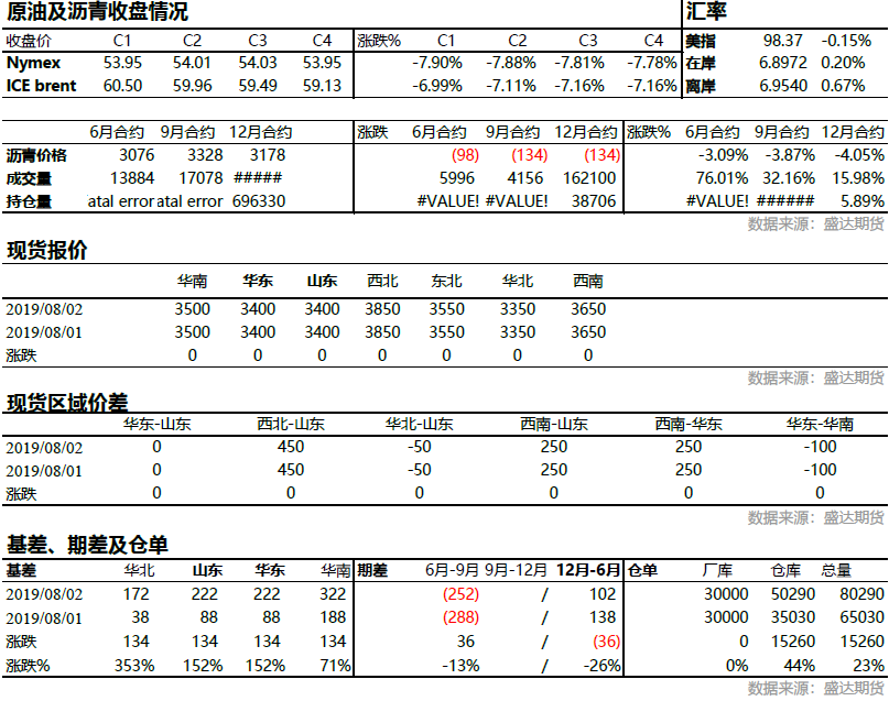 宏观风险再现,川普再次发推升级关税冲突,化工品齐跌,沥青首当其冲但跌幅不及原油;现货价格暂无放映。利润空单再次给出入场边际。市场预期89月供给端承压,而北方环保限产愈发临近,存在对需求端担忧。