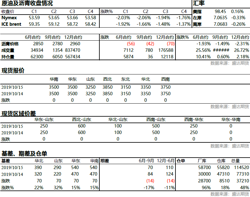继昨夜原油与沥青暴跌后,今日基本维持盘整,1912-2006与2006-2009期差均继续向下修复且1912-2006-2009合约的back结构有所转弱(1912-2006比上一交易日下跌14元/吨收于110元/吨,2006-2009比上一交易日下跌14元/吨收于70元/吨),1912裂解价差因原油终于下跌而有小幅恢复,且1912-2006-2009裂解价差contango结构有所减弱或继续反复,一系列价差显示近月压力凸显,由于现货价格持稳,基差今日随期价下行而走强,目前仍未看到需求有起色,或将现货更多向期货方向修复。