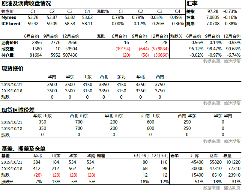 沥青单边、月差、裂解价差今日有小幅修复,1912-2006同上一交易日上涨12元/吨收于110元/吨,2006-2009比上一交易日上涨12元/吨收于80元/吨,1912裂解价差收于54.9,且1912-2006-2009裂解价差contango结构有所减弱或继续反复,一系列价差显示近月压力凸显,由于现货价格持稳,基差今日小幅下行,目前仍未看到需求有起色,或将现货更多向期货方向修复。
