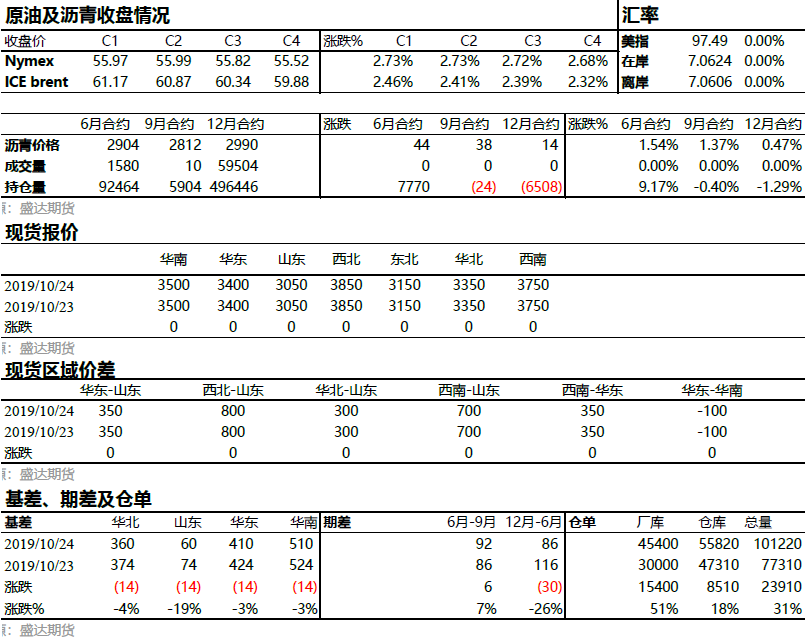 沥青单边随原油上行有小幅上涨,但幅度不及原油,月差、裂解价差走势出现劈叉,1912-2006同上一交易日下跌30元/吨收于86元/吨,2006-2009比上一交易日上涨6元/吨收于92元/吨,1912裂解价差收于53.8,且1912-2006-2009裂解价差contango结构有所减弱或继续反复,一系列价差显示近月压力凸显,由于现货价格持稳,基差今日小幅下行,目前仍未看到需求有起色,或将现货更多向期货方向修复。