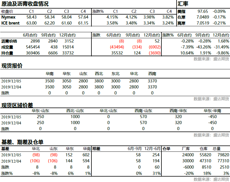 沥青期货合约主力换月至2006合约表现为小幅下跌,1912和合约进入交割月表现依旧坚挺,导致月差、裂解价差走势有所分化,1912-2006同上一交易日上涨60元/吨收于254元/吨,2006-2009比上一交易日上涨0元/吨收于58元/吨,2006裂解价差收于51.3,且1912-2006-2009裂解价差contango结构有所减弱或继续反复,一系列价差显示近月压力凸显,现货价格本周继续下调,目前1912价格小幅升水于华东价格。