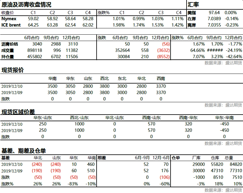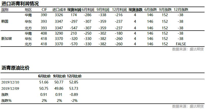 需求与库存超预期2006合约表现偏强给出无风险套利区间,月差、裂解价差走势有所分化且1912-2006-2009裂解价差contango结构有所减弱或继续反复。1912合约有新增仓单价格下行。若考虑原料价格以及沥青利润因素,中长线单边价格应理性看待。1912-2006同上一交易日下跌106元/吨收于70元/吨,2006-2009比上一交易日上涨0元/吨收于52元/吨,2006裂解价差收于51.66。