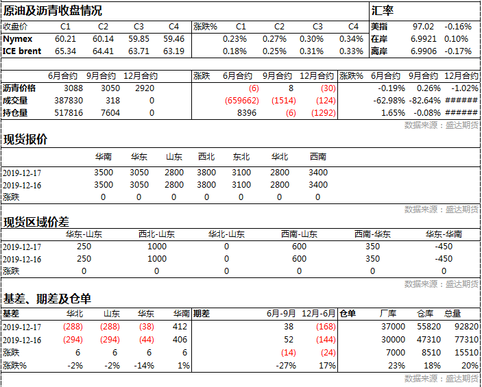 需求与库存超预期2006合约表现偏强给出无风险套利区间,月差、裂解价差走势有所分化且1912-2006-2009裂解价差contango结构有所减弱或继续反复。1912合约有新增仓单价格下行。若考虑原料价格以及沥青利润因素,中长线单边价格应理性看待。1912-2006同上一交易日下跌24元/吨收于-168元/吨,2006-2009比上一交易日下跌12元/吨收于42元/吨,2006裂解价差收于51.70。