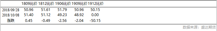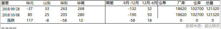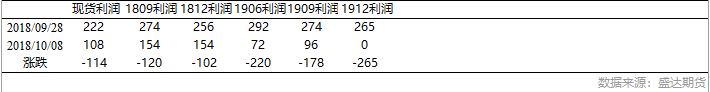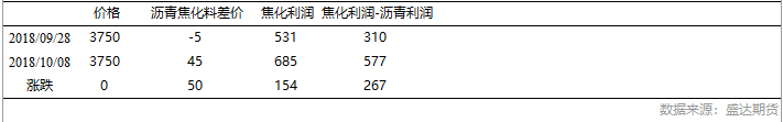 1812主力合约价格较节前小幅收涨,主力合约1812收于3770元/吨,涨幅1.56%。山东现货价格继续上行50元/吨至3795元/吨。10月马瑞贴水3.0686美元/桶,代理费3.35美元/桶,较9月分别有1.83美元/桶和0.15美元/桶的涨价,与国庆假期期间上涨的原油价格一同压缩炼厂利润,但成品油涨价对此有所缓解,总体看来利润降低到100+元/吨的水平,将对现货和期货价格均形成支撑。 焦化装置利润目前明显好于沥青利润,理论上炼厂有转产焦化的动力。10月初贸易商库存水平为 30%,去除2018年初高库存水平的影响,低于去年同期库存水平超过10,低库存支撑现货的上涨。行情展望:短期依然看多,但需跟踪库存水平以及消费季节性结束的来临。