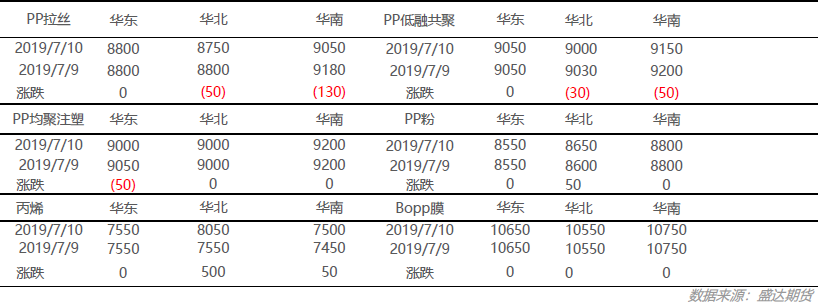 丙烯:今日丙烯市场价格继续小涨,炼厂丙烯货源紧缺,报盘普遍小涨;粒料:今日国内粒料市价格弱势整理,期货回调打击业者心态,虽部分地区货源紧张,但下游对高价货源接受度降低;粉料:上游丙烯单体价格小幅上升,粉料成本面压力增加,但是下游面对高价明显抵触,粉料价格维稳为主。