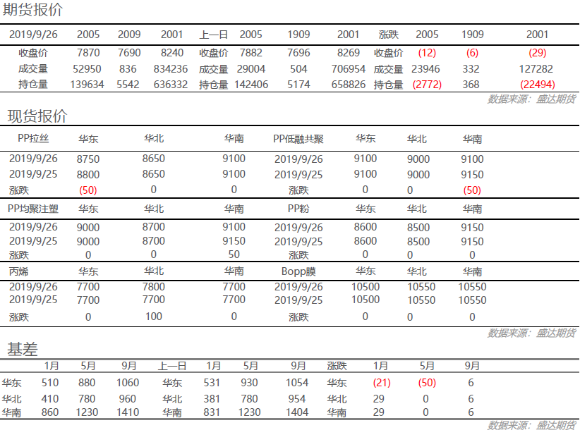 丙烯:今日丙烯市场价格维稳运行,山东地区因受重污染天气应急政策影响,部分丁辛醇及环氧丙烷工厂负荷调降,加之国五以下车辆运输受限,丙烯需求偏淡。粒料:今日国内PP市场震荡整理为主,期货震荡走跌,打压业者心态,贸易商积极让利出货,多数地区报价略有松动。粉料:上游丙烯趋于稳定,聚丙烯期货弱势下行,加之国际原油期货连跌,利空业者心态,粉料价格稳中弱势整理。