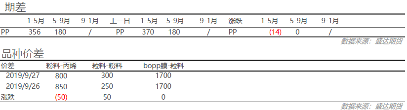 丙烯:今日丙烯市场价格有所下滑,国庆临近,生产企业排库积极性提高,山东部分下游工厂限产导致丙烯需求下滑,且淄博及滨州地区限行情况相对严格,炼厂出货压力增大,报盘普遍下调。粒料:今日国内PP市场弱势整理,石化厂价较为稳定,市场货源偏少,假期临近贸易商挺价意愿下降,市场价格重心有所下移。粉料:聚丙烯期货弱势下行,加之临近国庆假期,下游工厂备货基本完成,采购积极性下降,粉料价格弱势下调。