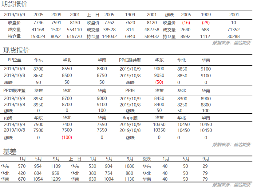 丙烯:今日丙烯市场价格延续稳定,下游产品利润空间及开工率较好,丙烯市场供需平衡,市场观望为主。粒料:今日国内粒料市场价格继续弱势整理,库存压力仍存,部分商家价格窄幅向下。粉料:上游丙烯单体维稳运行,聚丙烯期货盘面冲高后回落,业者心态较为谨慎,粉料价格稳中整理为主。