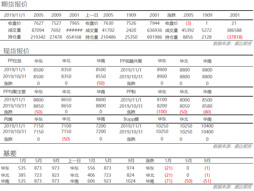 丙烯:今日丙烯市场价格重心继续下移,国际原油及聚丙烯市场价格延续跌势,市场心态相对偏弱,炼厂让利出货为主。但天津渤化PDH装置停车,山东下游长约供应不足,或给丙烯市场带来一定利好支撑。粒料:今日国内粒料市场价格低位整理为主,两油库存维持低位,月初开市整体依旧表现一般,市面资源难有释放,下游持续刚需采购。粉料:上游丙烯单体跌幅扩大,午间聚丙烯期货行情不佳,今日粉料价格大跌,现阶段粉粒料价差较小,粉料低价优势较弱。