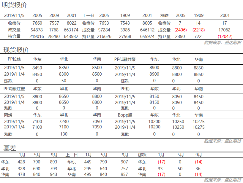 丙烯:今日丙烯市场价格延续涨势,聚丙烯期货涨势,利好市场心态,下游工厂买盘积极性提升,生产企业出货顺畅,报盘普涨。粒料:今日国内粒料市场价格维稳为主,期货高开高走,业者心态较好;石化出厂价部分下调,挺价为主,下游刚需接货。粉料:今日聚丙烯行情偏强震荡,现阶段粉粒料价差较小,今日粉料价格稳中整理为主。