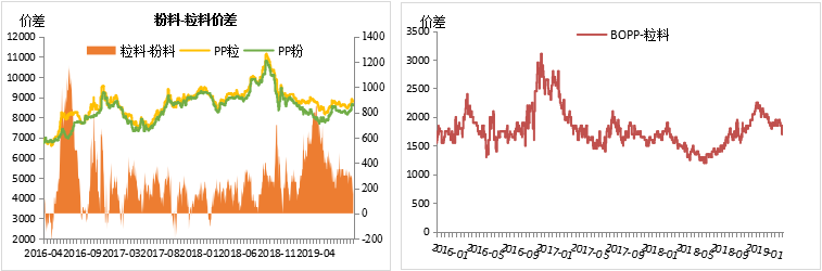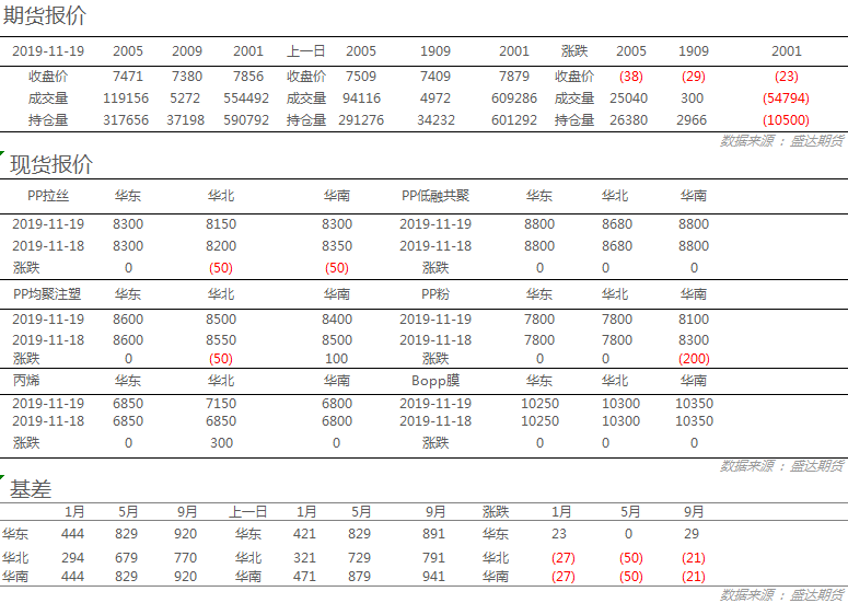 丙烯:今日丙烯市场价格重心小幅下移,聚丙烯期、现货价格跌势,利空市场心态。生产企业库存压力暂可控。粒料:今日国内粒料市场价格弱势下调,部分地区部分牌号下滑50元/吨左右,昨夜期货飘红,今日早间期货高开后区中震荡运行,然而期货飘红对于现货的提振作用有限,石化厂价今日继续下调,成本支撑走弱。粉料:今日粉料价格企稳,丙烯单体价格弱势整理,粉料利润空间稍有改善。