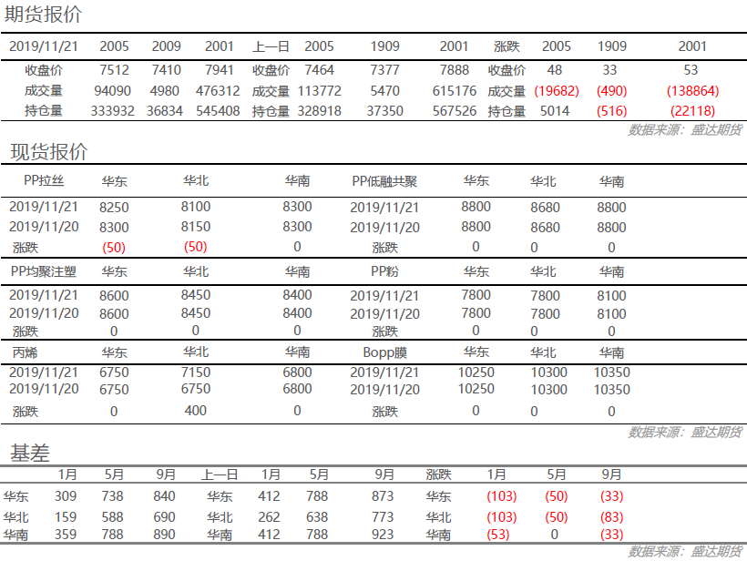 丙烯:今日丙烯市场价格平稳运行,国际原油及聚丙烯期货价格涨势,利好市场心态,然山东地区启动环保二级橙色预警,物流运输及部分下游装置负荷或受影响。粒料:今日国内粒料市场价格弱势整理为主,石化降库节奏放缓,局部出厂价下调,成本支撑走弱。粉料:今日粉料价格企稳,上游丙烯单体价格弱势整理,部分地区环保限产措施重启,部分生产厂家和下游工厂面临停车或限产,市场供需博弈下,粉料价格企稳。