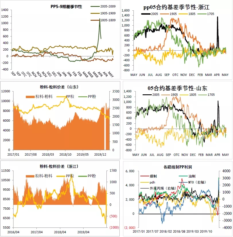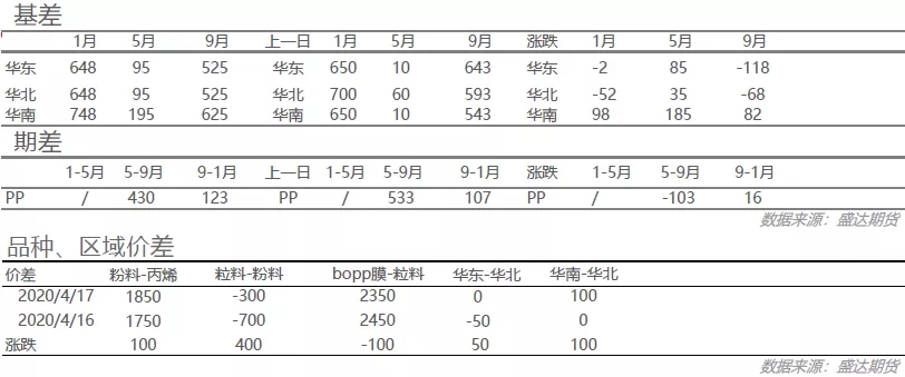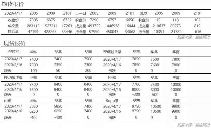昨日聚丙烯高开,午后走低,尾盘再度拉高,05合约收于7305,涨15,09合约收于6875,涨118;目前现货价格企稳,国内主要市场价格上升50-100元/dun ,05合约华东基差收于95,09合约华东基差收于525;05-09月差收于430,价差收窄,后续随着市场的冷静,月差或将再度走弱。