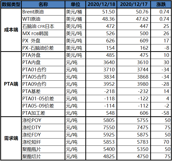 注2:PTA期货价格为当日收盘价
