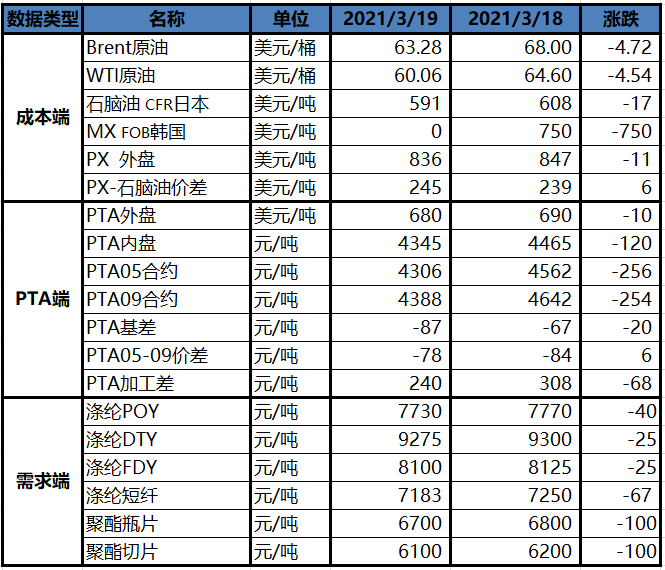 原油受OPEC原油大跌,成本端支撑坍塌。PTA期货主力合约今日跌停。后续需继续关注原油情况,PTA自身基本面无较大变化。原油若有较大幅度变化,PTA将跟随原油变化。若无,PTA将继续震荡,建议观望,谨慎操作。