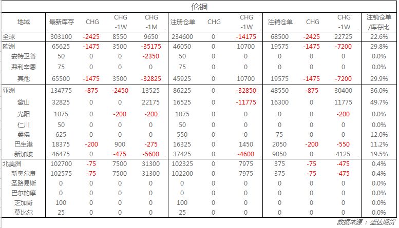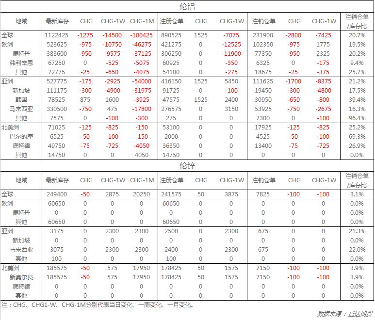 从库存来看,昨日伦铜库存减少2425吨至303100吨;伦铝库存减少1275吨至1122425吨;伦锌库存减少50吨至249400吨。
