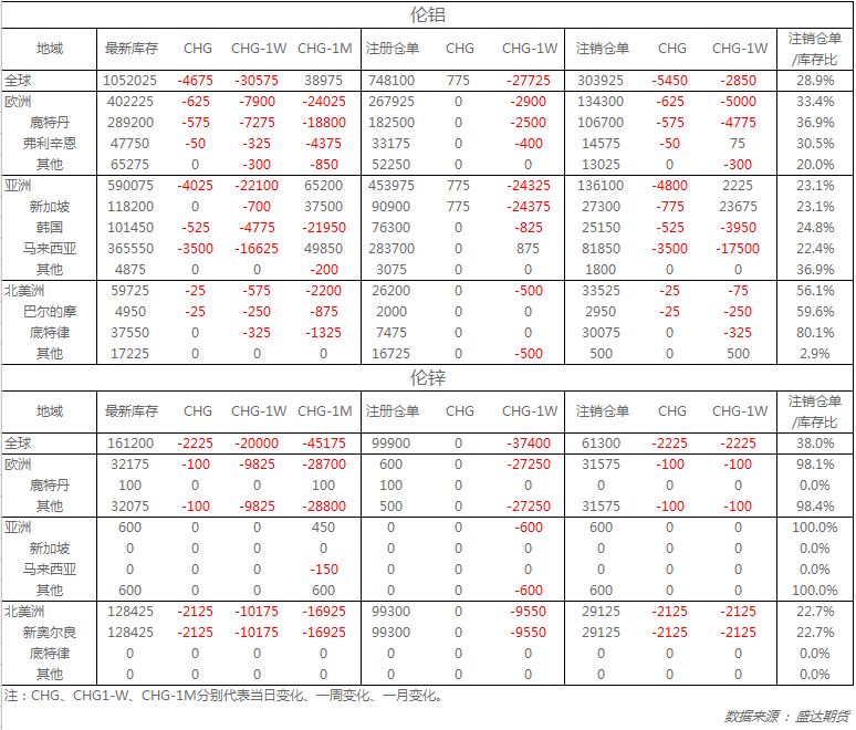 从库存来看,昨日伦铜库存增加1125吨至152225吨;伦铝库存减少4675吨至1052025吨;伦锌库存减少2225吨至161200吨。