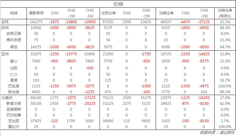 11月22日,SMM统计国内电解铝社会库存(含SHFE仓单):上海地区34.2万吨,无锡地区60.9万吨,南海地区20.0万吨,杭州地区9.7万吨,巩义地区7.6万吨,天津5.0万吨,临沂2.5万吨,重庆2.5万吨,8地铝锭库存合计142.4万吨,环比上周四减少2.9万吨。