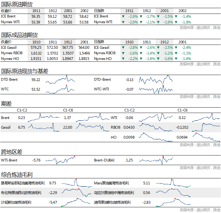 市场信息消息简述:沙特能源部:11月原油产量维持在986万桶/日,重申计划到11月底实现1200万桶/日的原油产能。俄罗斯能源部长诺瓦克:俄罗斯目前原油产量较去年10月减少逾20万桶/日俄罗斯天然气工业石油公司:如有必要,可在13个月内将原油产量增加15万桶/日。俄罗斯方面并不认可OPEC+需要进一步强化减产的态度,也令供需平衡前景再度倾向供过于求。英国金融时报称,据知情人士透露,政府预计将在沙特阿美董事会于10月20日宣布上市计划之前批准该公司在国内上市。沙特政府正寻求最早于11月在沙特证券交易所(Tadawul)出售至多3%的沙特阿美股份。当地银行家表示,国内对此次售股的需求强劲。预计沙特各银行将向投资者大举放贷,以便为购买沙特阿美股票提供资金。银行还设立了一些基金,散户股东可以通过这些基金认购股票。目前沙特阿美拒绝对此置评。据上海航运交易所,10月14日中国进口原油运价指数再度上涨超50%,这较9月底上涨了高达近400%,巨大涨幅给消费国炼厂原料增加了巨大的成本。网传由于运费太高,中石化决定在12月份将炼油产量减少100万吨。
