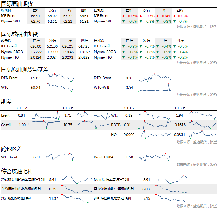 市场信息消息简述:伊朗美国石油协会(API)周二公布的数据显示,美国上周原油库存下降,汽油和馏分油库存增加。截至1月3日当周,美国原油库存下滑590万桶,分析师此前预估为下滑360万桶。API称,在俄克拉荷马州库欣仓库的原油库存下滑100万桶。炼厂原油加工量减少2.5万桶/日。API数据显示,截至1月3日当周,美国汽油库存增加670万桶,分析师此前预估为增加270万桶。当周包括柴油和取暖油在内的馏分油库存增加640万桶,分析师此前预估为增加390万桶。上周美国原油进口量下滑2.3万桶/日,至590万桶/日。新华社德黑兰1月7日报道,伊朗官方媒体伊斯兰共和国通讯社7日报道,伊朗议会当天通过一项紧急动议,将美国军队、美国国防部列为“恐怖组织”。报道说,伊朗议会当天投票通过一项紧急动议,决定将美军、美国国防部列为“恐怖组织”,将美国国防部所有人员、下属机构以及策划、实施杀害伊朗伊斯兰革命卫队下属“圣城旅”指挥官苏莱曼尼的美军指挥官列入黑名单。根据这项动议,伊朗政府将向“圣城旅”拨款2亿欧元,以加强其防御能力。伊朗方面未透露这项动议的更多内容。伊朗外长扎里夫7日在接受美国有线电视新闻网采访时说,美军杀害苏莱曼尼是一种国家恐怖主义行为。本月3日,苏莱曼尼在伊拉克巴格达国际机场外遭美军空袭身亡。伊朗最高领袖哈梅内伊随后发表声明说,伊朗方面将对这起事件进行“强硬复仇”。2019年4月,美国总统特朗普宣布将伊朗伊斯兰革命卫队列为“恐怖组织”。伊朗国家最高安全委员会则宣布将美军中央司令部及其驻西亚军队认定为“恐怖组织”。美国统计局周二公布的海外贸易数据显示,美国11月原油出口降至302.3万桶/日,10月为338.3万桶/日。11月美国向加拿大出口原油48.2万桶/日,向韩国出口43.9万桶/日,向英国出口31.1万桶/日,向荷兰出口24.2万桶/日,向印度出口21.9万桶/日,向意大利出口16.9万桶/日,向中国台湾出口14.8万桶/日,向新加坡出口13.5万桶/日,向法国出口10.2万桶/日。美国统计局的海外贸易石油数据要比受到密切关注的美国能源信息署(EIA)提前数周公布。EIA的数据基于统计局数据,将在每个月底公布原油数据。